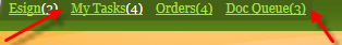 | QuickNav Font Color | Font for links at top, like MyTasks, DocQueue, etc. | ![]() The numbers in () parenthesis for E-Sign and My Tasks are hard-coded and can only be changed by MIE. |