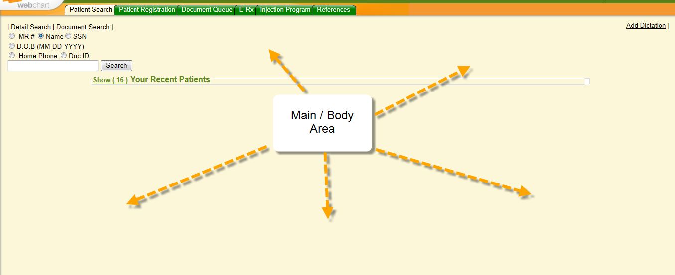 | Background Color | For "Custom", controls the outside frame – above tabs, below sidemenu, bottom status line of WC .For "miEHR", controls below the sidemenu tabs and the status bar at the bottom. | ![]() |